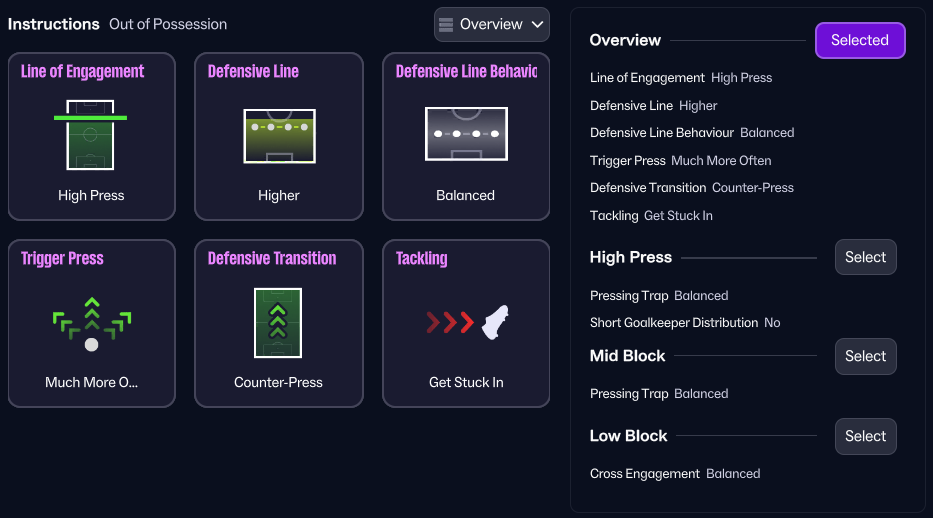 Run At Defence: High Acceleration, Pace, and Agility are maximised by encouraging players to take on their markers, creating overloads and drawing opponents out of position.