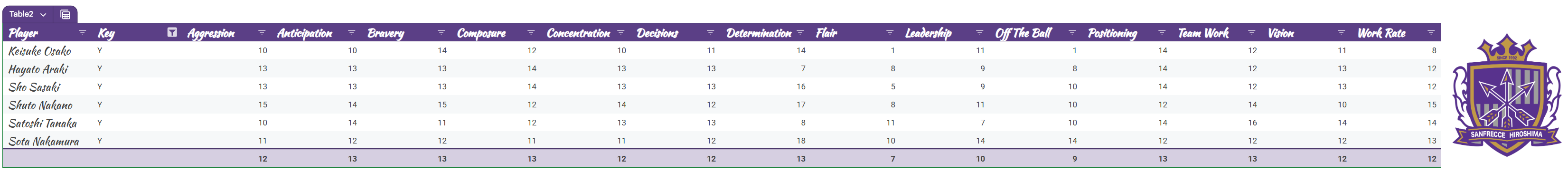 However, me being me - I have taken the opportuntiy to fire up the spreadsheet and conduct my analysis the calculated way. I will now walk you through this process using Sanfrecce Hiroshima as my example, a team which until today, I knew nothing about and had never watched.