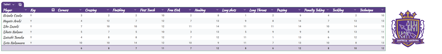 Fortunately for me, six Sanfrecce Hiroshima players were nominated for the 2025 J.League Outstanding Player Awards - Therefore, I simply have picked these players as my sample.